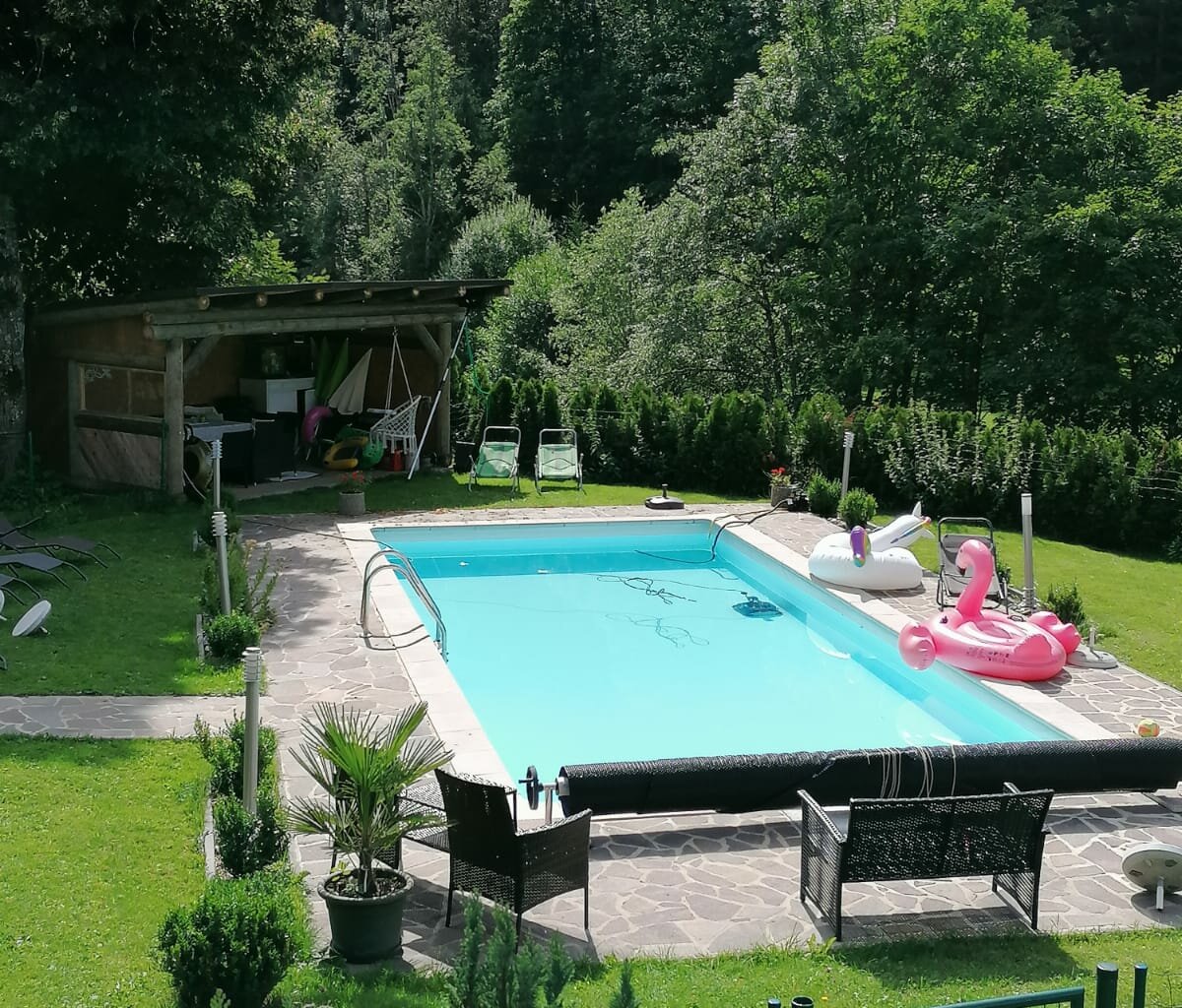 Unser Spielparadies bietet für jeden das passende Spielzeug: Go-Karts, Bobbycars, Rutschen und Schaukeln, eine überdachte Sandkiste, ein großes Trampolin, Schwimmbecken, Kinderfahrräder, Baumhaus uvm. Ein extra eingerichteter Spielraum mit Tischtennis, Tischfußball, Billard sorgt dafür, dass es auch bei Schlechtwetter nicht langweilig wird.